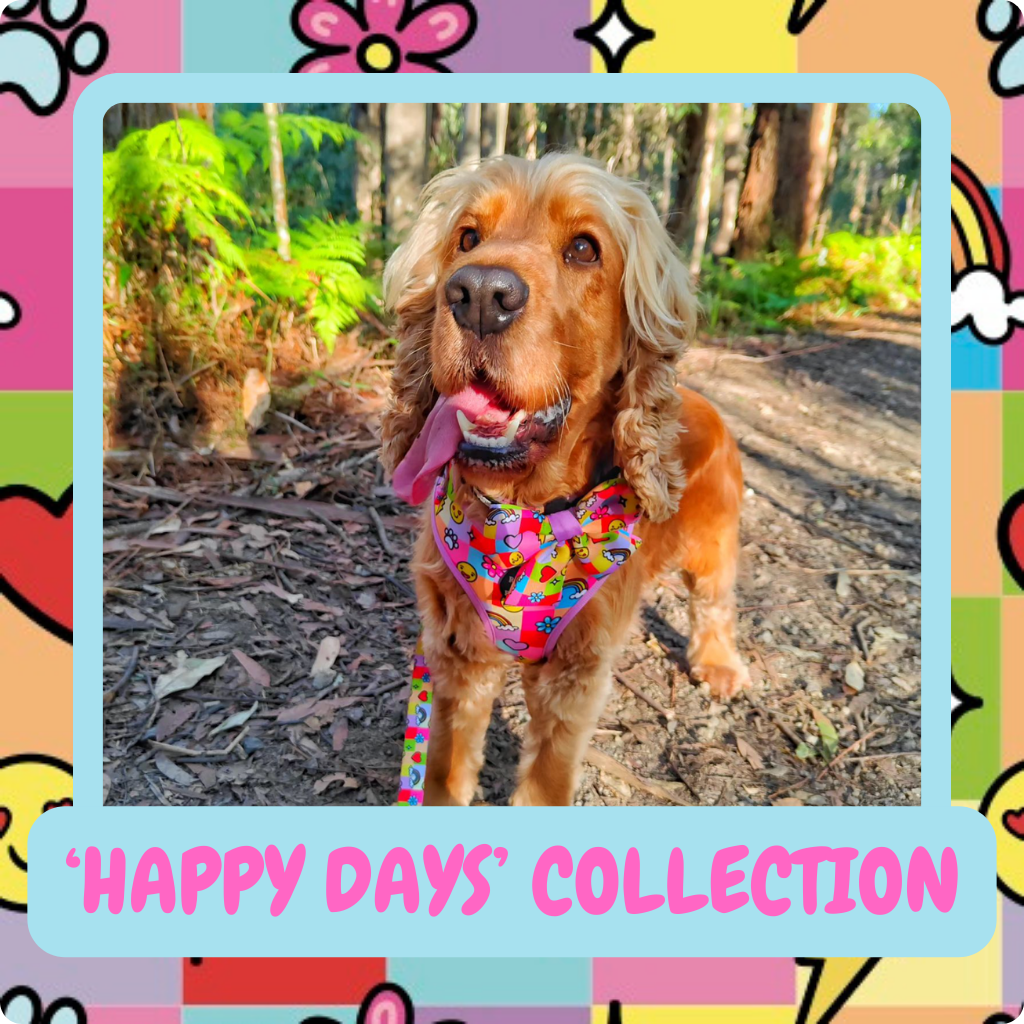 Introducing our vibrant "Happy Days" Pet Collection, a carefully crafted ensemble from Australia designed to bring cheerful positivity and unmatched style to your pet's wardrobe. Elevate your pet's outings with the Happy Days Pet Harness and complete the look with the thoughtfully crafted Happy Days Pet Collar, both featuring playful emojis for a burst of charm.